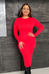 Тепле в'язане плаття по фігурі з акуратною округлою горловиною та довгим рукавом.