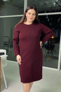 В'язане елегантне плаття приталеного фасону з геометричним малюнком, що вдало видовжує силует.