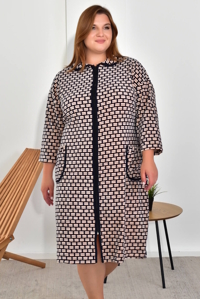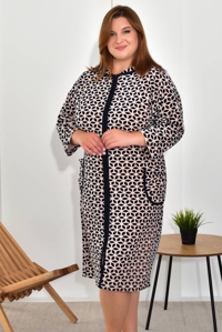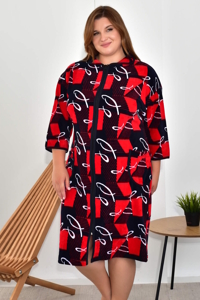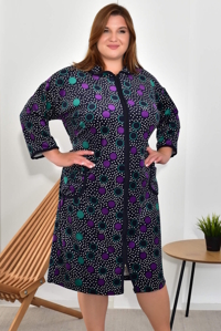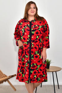 Халат представлений у насичених темних кольорах з яскравим квітковим принтом. . Виріб має зручну довжину до колін і рукави три чверті, що робить його комфортним для щоденного носіння вдома. Спереду застібка на блискавку. Також є пояс в комплекті.