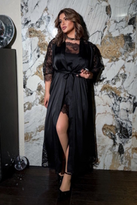 Мереживні рукави, пояс у комплекті. Модель стане чудовим доповненням до шовкової піжами чи сорочки.