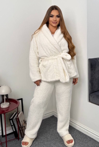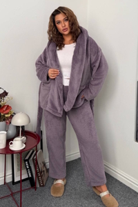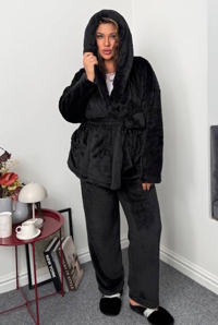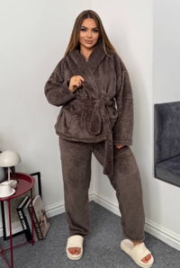 Приємний до тіла, дуже затишний. Кофта з пояском, топ з рубчика. Штани на резинці.