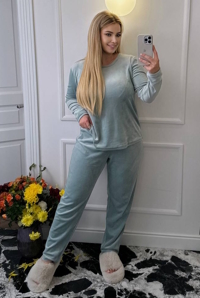 Кофта з округлою горловиною. Штани прямі, пояс на резинці.