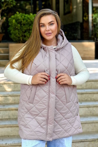 Стильна стьобана жилетка з капюшоном та кишенями.