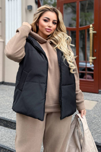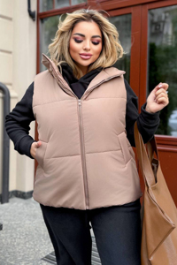 Стильна утеплена жилетка з плащівки – must-have для прохолодного сезону. Легка, але водночас тепла, вона чудово поєднує практичність і сучасний дизайн. Прямий крій та зручна довжина роблять її універсальною для щоденного носіння, а висока стійка-комір захищає від вітру.