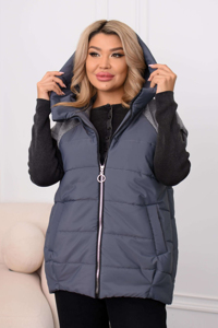 Тепла практична жилетка для міжсезоння, зшита з якісної стьобаної плащівки. В якості наповнювача використаний силікон, що забезпечує чудову теплоізоляцію при невеликій вазі виробу. Модель має прямий, подовжений крій та оснащена глибоким капюшоном для додаткового захисту від вітру та негоди.