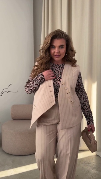 Стильний жилет з тканини преміум якості у трендових кольорах – ідеальне поєднання класики та сучасного стилю. Його оригінальний косий крій одразу привертає увагу, а діагональне розташування ґудзиків додає витонченого акценту. Завдяки продуманому силуету модель ідеально підкреслює фігуру, надаючи образу елегантності та впевненості.