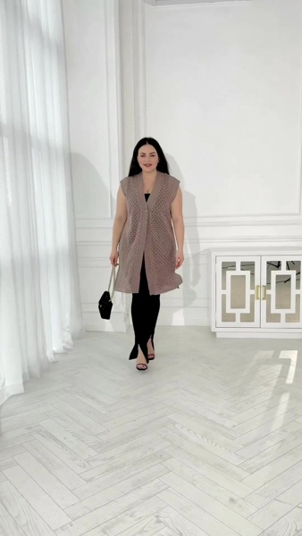 Літній в'язаний подовжений жилет прямого фасону.