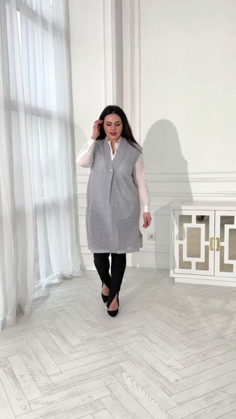 Літній в'язаний подовжений жилет прямого фасону.