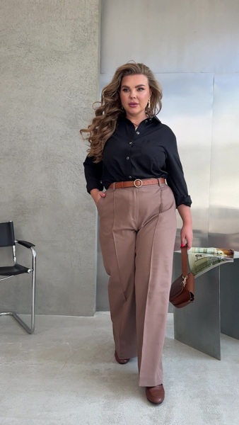 Просторий силует забезпечує комфорт протягом усього дня, дозволяючи вам рухатися вільно та невимушено. Гумка позаду на талії додає додаткової зручності, забезпечуючи ідеальне прилягання.