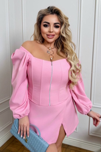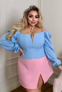 Елегантна ошатна блузка-корсет, зшита з якісної костюмної тканини, що забезпечує ідеальну посадку та гарне тримання форми. Модель має приталений крій з рельєфними швами, що імітують корсет, ідеально підкреслюючи талію та груди. Квадратний виріз горловини візуально витягує шию.