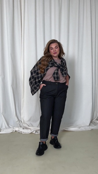 48-50 р-р: довжина брюк по внутрішньому шву 71см, довжина брюк по зовнішньому шву з урахуванням пояса 101см, ОТ - 74-86см, ОС - 106см.
