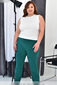 Посадка в штанів комфортна — пояс на резинці забезпечує зручність у носінні, адаптуючись до фігури. Модель має бічні кишені з декоративними металевими заклепками. Прямий крій візуально подовжує ноги та робить штани універсальними для щоденних образів. Ідеальний варіант як для активного дня, так і для більш стриманих, офісних образів.
