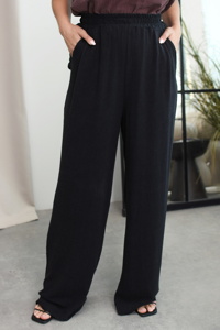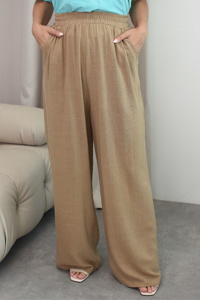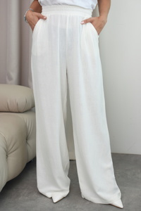 Основа брюк однотонна По фасону - прямі та спадаючі. Талія пошити на резинці, що забезпечує комфорт при носінні.