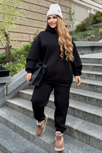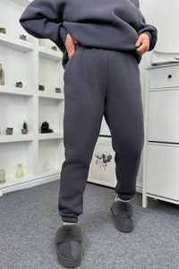 Теплі та комфортні повсякденні джогери, зшиті з м'якої та щільної тринитки на флісі. Цей матеріал забезпечує чудове збереження тепла та затишок у прохолодну погоду. Штани мають вільний, трохи звужений донизу крій. Висока посадка та широкий пояс на м'якій резинці гарантують ідеальну та зручну фіксацію.