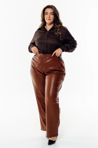 Брюки прямого крою з екошкіри на замші — універсальна база для сучасного гардероба, яка поєднує лаконічний силует і комфорт.