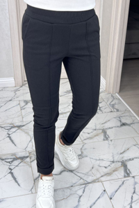 Жіночі штани прилеглого крою ідеальні для прохолодної погоди, оскільки вони, утеплені флісом. Головна особливість – вертикальні прострочені шви (стрілки) спереду, що візуально подовжують силует і надають моделі більш класичного, охайного вигляду.