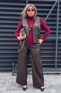 Шкіряні брюки - нове рішення для сезону осінь-зима-весна. Брюки фасону палаццо - брюки, що розширяються від бедра і нагадують спідницю, посадка висока.