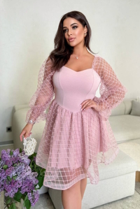 Рукави об’ємні виконані з легкої органзи. Пишна спідниця додає грайливості образу. Завдяки продуманому крою, сукня ідеально сідає по фігурі, роблячи образ завершеним та гармонійним. Сукня ідеально підійде для звичайної прогулянки, вечірки, ділових зустрічей.