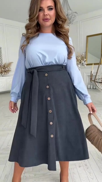 Основа спідниці - вельветова тканина яка є надзвичайно актуальною вже багато сезонів.На талії є шлейки та пасок для підкреслення лінії талії, а по спинці розташована резинка, яка додасть додаткового комфорту. По обидві сторони вшиті кишені для зручності.Спідниця ідеально комбінується з блузкою "Ейліш".