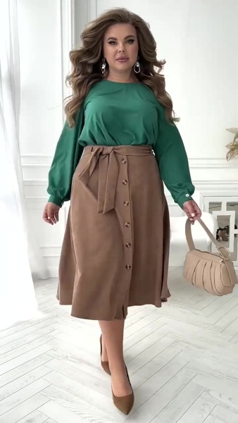 Основа спідниці - вельветова тканина яка є надзвичайно актуальною вже багато сезонів.На талії є шлейки та пасок для підкреслення лінії талії, а по спинці розташована резинка, яка додасть додаткового комфорту. По обидві сторони вшиті кишені для зручності.Спідниця ідеально комбінується з блузою "Ейліш".