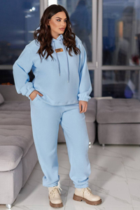 Теплий затишний спортивний костюм, зшитий з двостороннього флісу, що забезпечує максимальний комфорт, м'якість та збереження тепла. Виріб складається з худі та штанів. Худі вільного, подовженого крою (оверсайз) з глибоким капюшоном та функціональним шнурком-затяжкою. На грудях розташована невелика декоративна нашивка. Рукави оформлені м'якими манжетами на резинці.