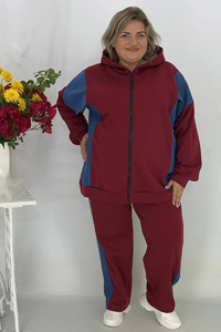 Зручний костюм-двійка виготовлений з приємного до тіла матеріалу – тринитка на флісі в комбінації з джинсом. Кофта з капюшоном вільного крою. Довгі рукави внизу на манжеті з приспущеною лінією плеча.