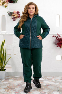 Спортивний практичний костюм, ідеально пасує для холодної погоди, поєднує в собі м'якість та захист. Комплект складається з куртки та штанів, виконаних з комбінації матеріалів: фліс-полар преміум якості та стьобана плащова тканина з наповнювачем. Ця комбінація забезпечує високу теплоізоляцію та надійний захист від вітру.