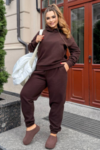 Затишний костюм з м’якого полар-флісу – справжнє втілення комфорту та стилю. Оверсайз худі з капюшоном і зручними кишенями дарує відчуття тепла навіть у прохолодну погоду, а штани з еластичним поясом та манжетами забезпечують легкість рухів і бездоганну посадку.