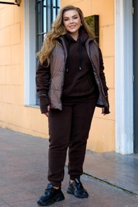 Універсальний теплий костюм-трійка, ідеальний для створення багатошарових образів та надійного захисту в холодну пору року. Комплект складається з трьох елементів: штанів, худі та жилета. Вироби пошиті з фліс-полар преміум якості (худі та штани) та стьобаної плащової тканини з наповнювачем (жилет), що гарантує високу теплоізоляцію та комфорт.