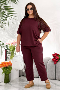 Низ комплекту – це трендові широкі штани вкороченого фасону. Вони мають комфортну середню посадку на м'якому еластичному поясі, що гарантує ідеальну фіксацію. Для додаткової практичності та зручності з боків передбачені місткі кишені.