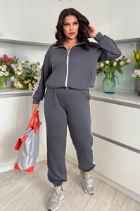 Кофта на блискавці, по боках кишені. Вздовж рукава подвійна стрічка в кольорі айворі!
