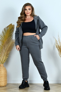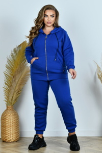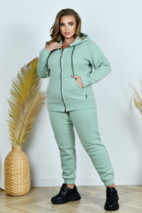 Зручне худі на замку-блискавці з капюшоном і шнурком у кулісці. Попереду розміщена об’ємна кишеня «кенгуру», рукави зі зручними манжетами. Штани мають посадку вище середньої, талія зібрана на еластичну резинку. Низ штанин також виконаний на резинці, у бокових швах розташовані кишені.