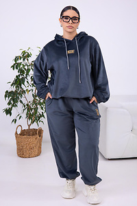 Стильний повсякденний костюм, виготовлений із м'якого та приємного до тіла велюру. Фактурна тканина добре зберігає тепло і гарантує абсолютний комфорт під час носіння.