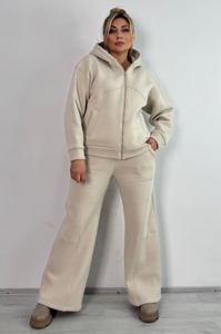 Кофта на змійці, вшитий капюшон, врізні кишені. Штани комбіновані, вільного крою, пояс на резинці, посадка висока. Комбінується з пуховиком "Рейчел" та пуховиком "Альма".