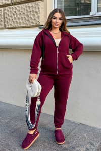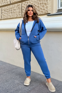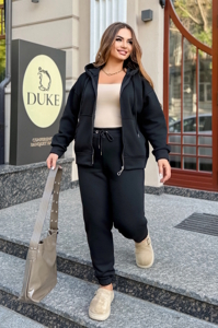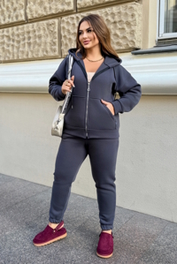 Утеплений повномірний спортивний костюм-двійка. Кофта на блискавці, з капюшоном, стильними перестрочками та накладними кишенями