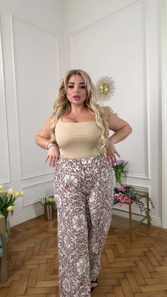 Брюки вільні палаццо, пояс на резинці, з високою посадкою витягують силует. Не мнеться та виглядає ідеально протягом дня. Поєднайте костюм з майкою.
