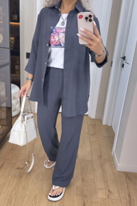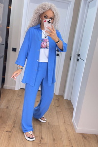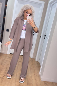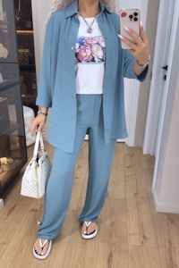 Прогулянковий костюм-трійка складається з сорочки, футболки із сублімаційним принтом та брюк палаццо. Це універсальний і максимально зручний комплект, який забезпечує комфорт щодня.