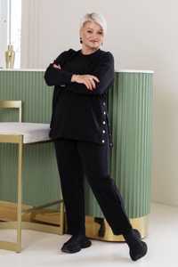Туніка вільного крою, по боках кнопки. Штани на резинці, робочі кишені. Якісна фурнітура. Трикотаж має розтяжність. Ідеальний костюм на кожен день.