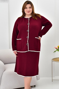 Костюм у складі має кофту та спідницю. Спереду на кофті наявні красиві ґудзики що застібаюся. Також нашиті зовнішні кишені. Спідниця до колін і на резинці на талії.