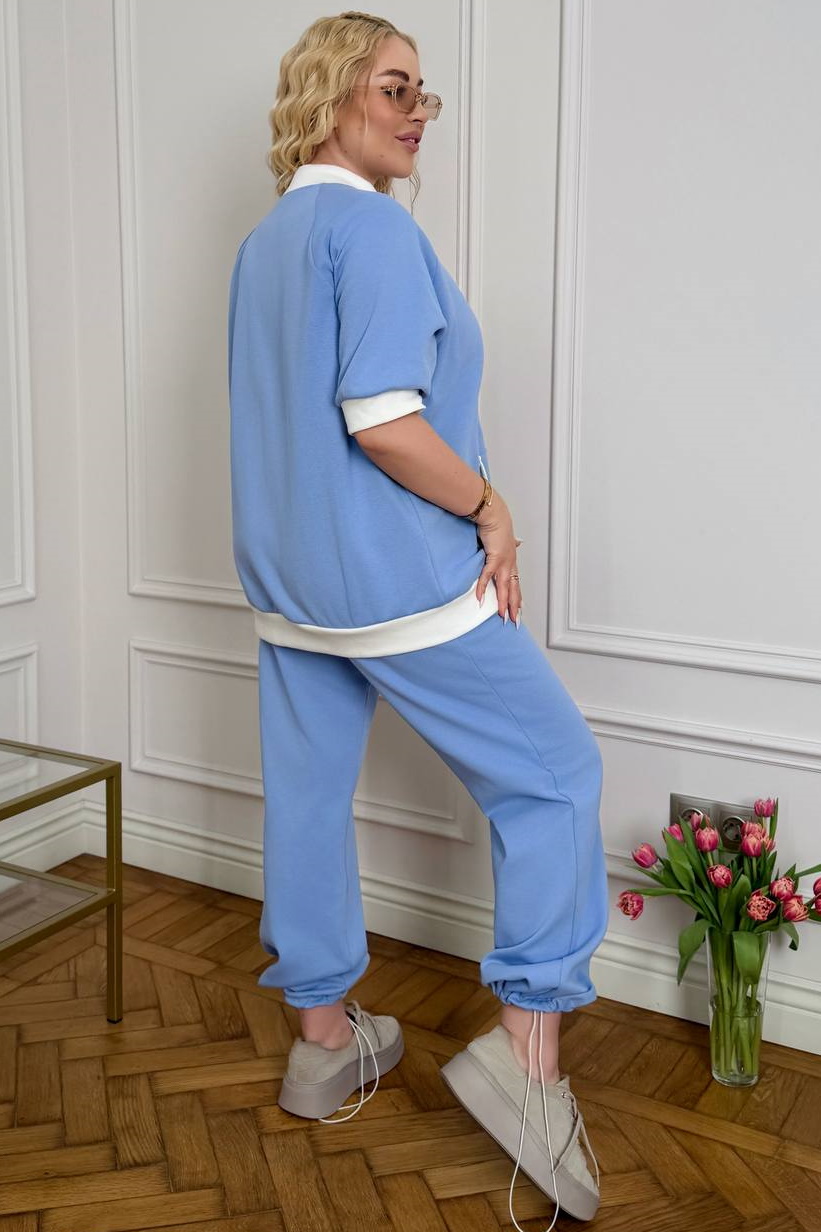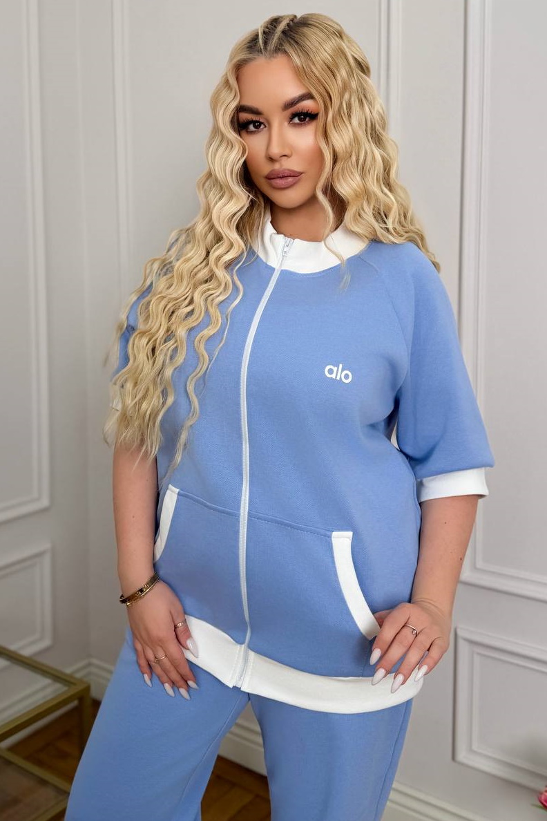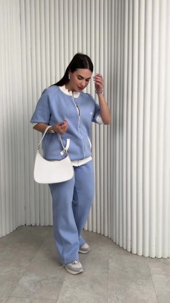 Кофта на блискавці доповнена зручними кишенями, а штани мають глибоку високу посадку та фіксатори внизу, що дозволяє легко перетворити їх на джогери; також модель оснащена практичними функціональними кишенями для максимального комфорту.