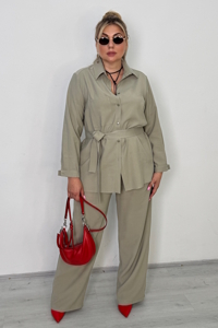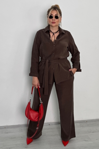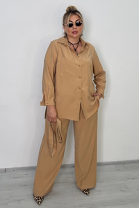 Сорочка вільного силуету, довгий рукав, пояс для підкреслення талії в комплекті. Брюки вільні по ти пу палаццо, пояс на еластичній резинці, посадка висока.