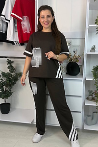 Стильний костюм-двійка, прикрашений оригінальними накатами та кіперною стрічкою, стане чудовим вибором для комфортного образу. Вільного крою кофта з рукавом, що прикриває лікоть, забезпечує зручність та легкість. Штани-кльош з кишенями з боків додають елегантності, а широка резинка на талії гарантує ідеальну посадку та комфорт протягом дня.