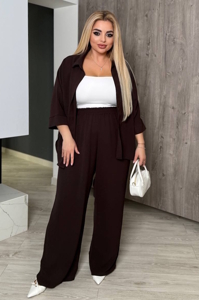 Сорочка вільного фасону, на гудзиках, приспущений рукав для легкості та вільного руху. Брюки зручніі довгі з ідеальною посадкою