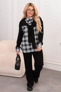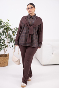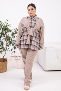 Сорочка вільного крою з декоративними рукавами, що імітують светр. Штани вільні, пояс на резинці, посадка висока.