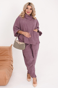 Стильний костюм-двійка – чудова база для створення повсякденних образів. Модель виготовлена з якісного приємного до тіла вельвету. Виріб оригінально скроєний.