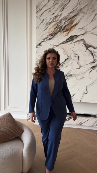 Стильний класичний костюм великого розміру, лаконічний та без лишніх деталей.