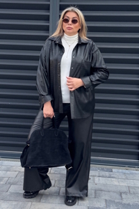 Сорочка деталі: вільний фасон, застібка - кнопки, лаконічний дизайн, фактурна тканина.