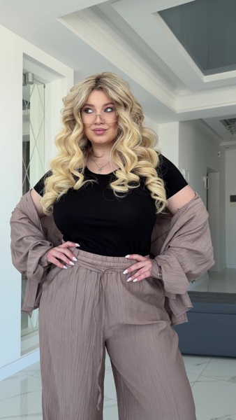 Брюки: палацо, кишені у бічному шві, пояс на гумці + шнурок всередині. Доповнюйте костюм футболкою "Герда".