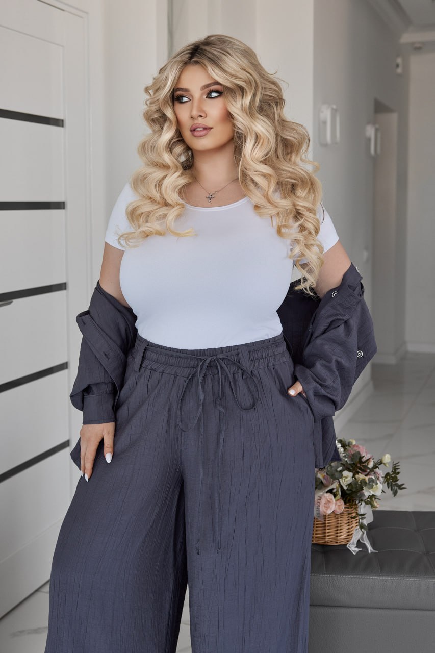 Брюки: палацо, кишені у бічному шві, пояс на гумці + шнурок всередині. Доповнюйте костюм футболкою "Герда".