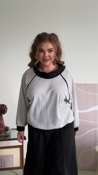 Кофта вільна з рукавом реглан, по горловині хомут. Спідниця максі, пояс на резинці.